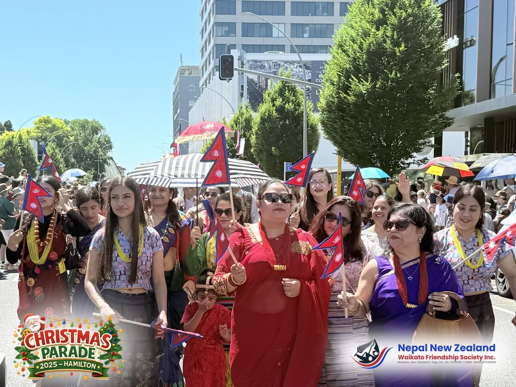 न्युजिल्याण्डको ह्यामिल्टन सहरमा आयोजित नेपाल–न्युजिल्याण्ड वाइकाटो फ्रेन्डसिप सोसाइटी (एनएनजेडडब्लुएफएस) ले क्रिसमस परेड २०२५ भव्यताका साथ सम्पन्न गरेको छ । एनएनजेडडब्लुएफएसले नेपाली संस्कृति, परम्परा र पहिचानलाई अन्तर्राष्ट्रिय समुदायसमक्ष पुर्याउने तथा सबैलाई समान दृष्टिले हेर्ने उद्देश्यसहित आयोजना गरिएको कार्यक्रममा नेपाली समुदायको सक्रिय सहभागिता रहेको थियो ।