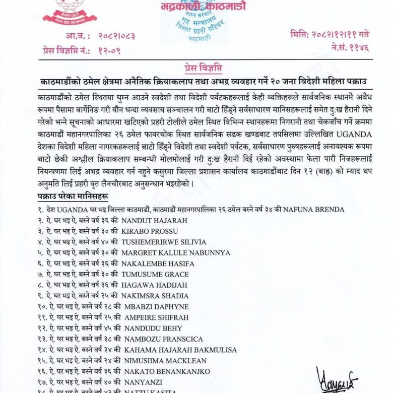 ठमेलबाट २० विदेशी महिला पक्राउ
