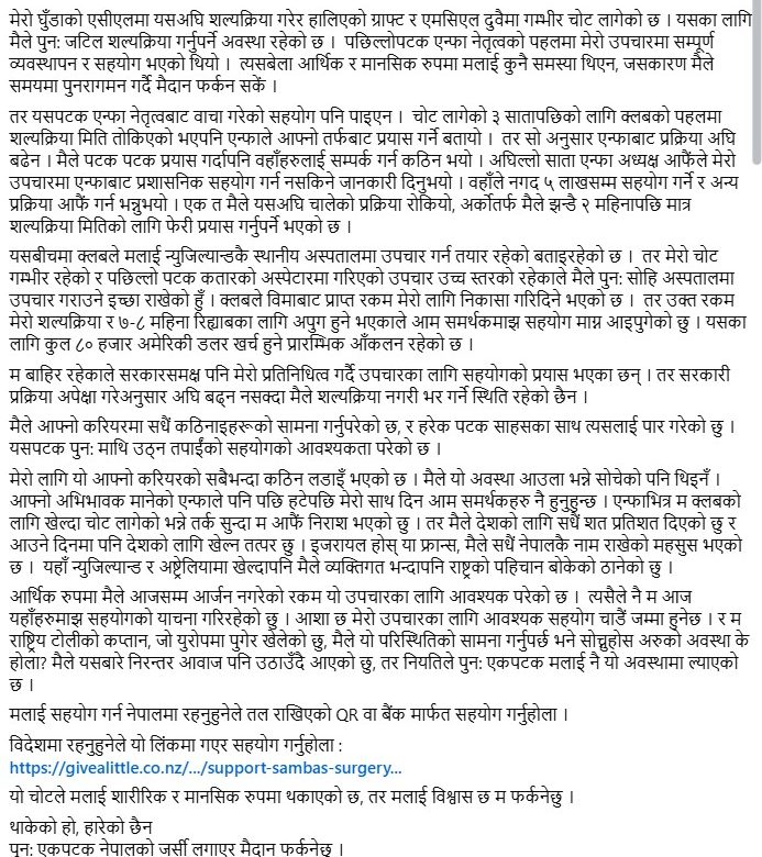 राष्ट्रिय फुटबल टोलीकी कप्तान सावित्रा भण्डारीको पुनः शल्यक्रियाका लागि ८० हजार अमेरिकी डलर आवश्यक, सहयोगको अपिल