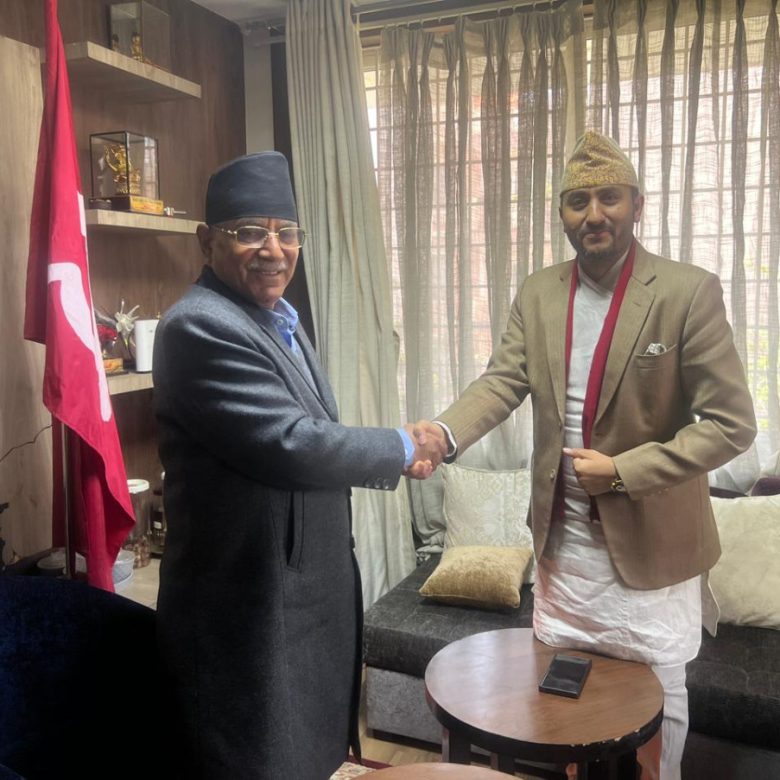 नेकपा संयोजक दाहाल र सञ्चारमन्त्री खरेलबीच भेटवार्ता